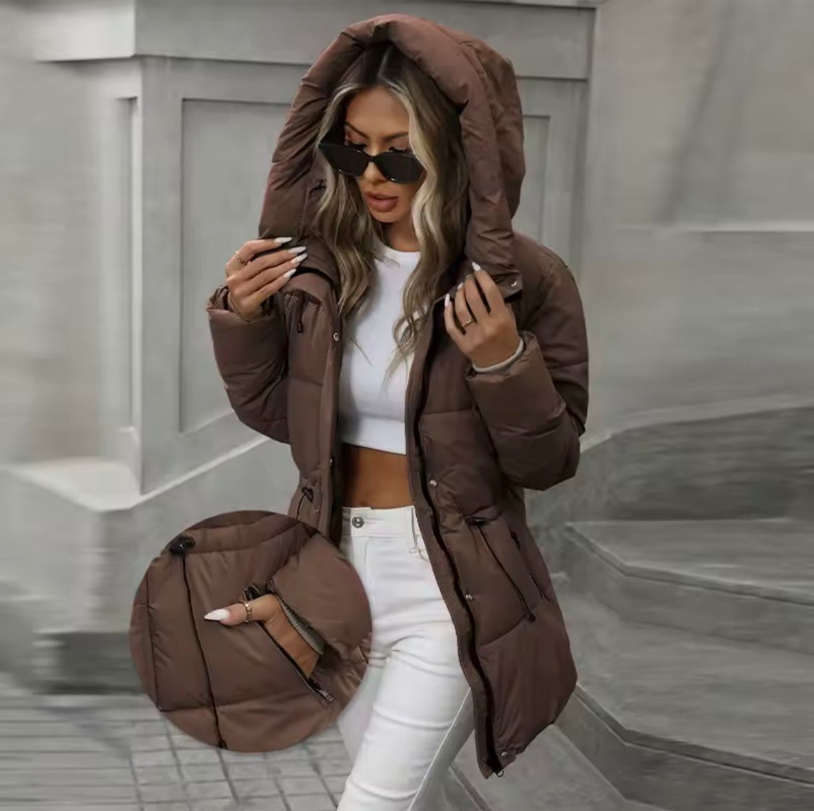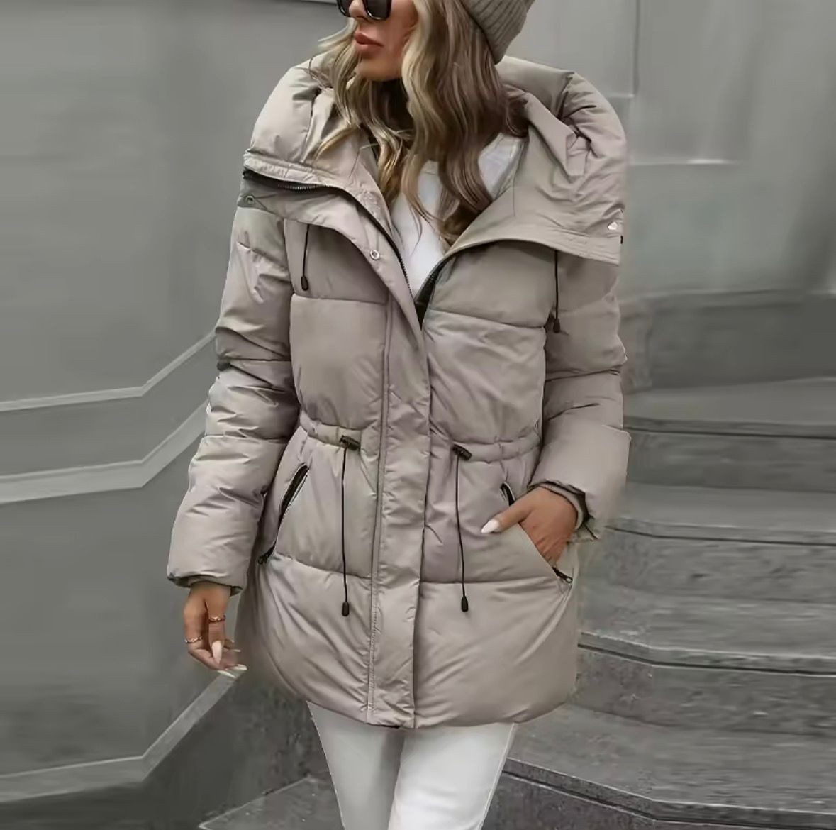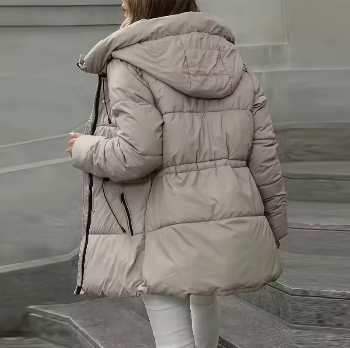Elegante, caldo e super confortevole, il piumino perfetto per affrontare l’inverno con stile. Imbottitura calda e leggera, ideale per le basse temperature, Cappuccio avvolgente per una protezione extra dal freddo, Chiusura frontale con zip, Tasche laterali con zip, pratiche e sicure, Coulisse regolabile in vita per una vestibilità femminile, Design moderno e versatile, facile da abbinare a ogni outfit